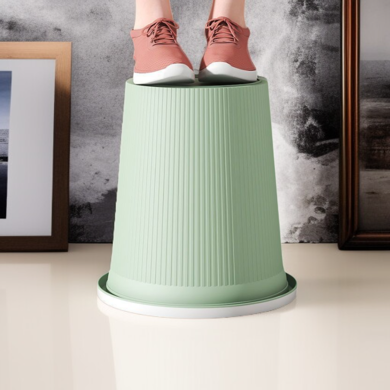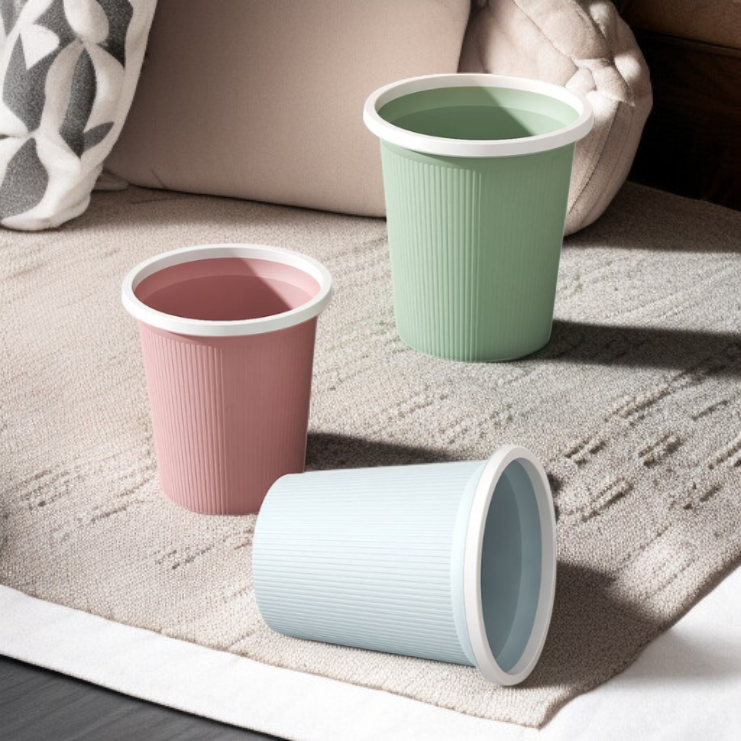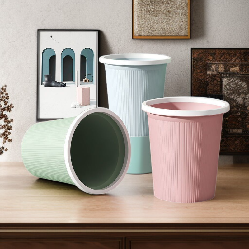 Durable round trash can with a sleek design, space-saving structure, easy to clean, suitable for home or office use. Enhances organization and maintains cleanliness efficiently.
